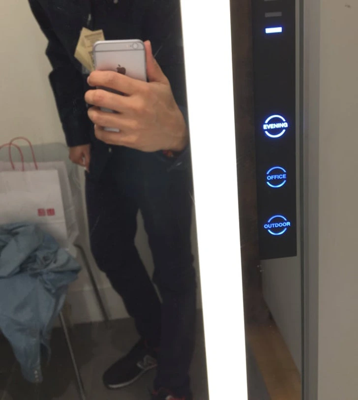 This changing room mirror has different light settings for you to try your clothes on in front of.