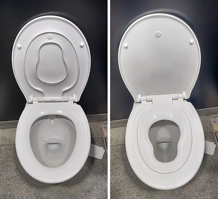 The public toilets at this shopping center have an extra smaller toilet seat for little humans.