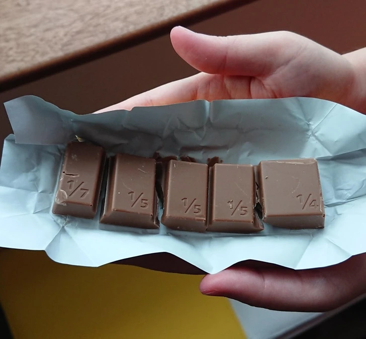 The bits of this chocolate bar are not equal.