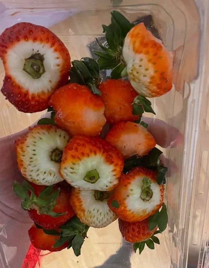 “Eats one bite from each strawberry because, “It freaks me out to get close to the white part.”