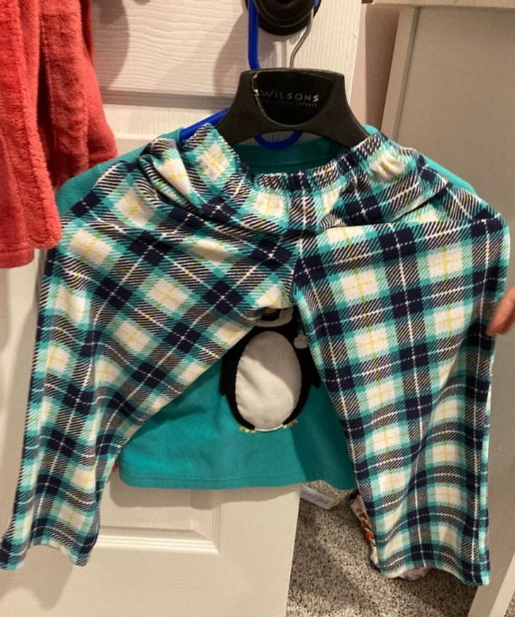 “This is how my daughter put the pants on the hanger.”