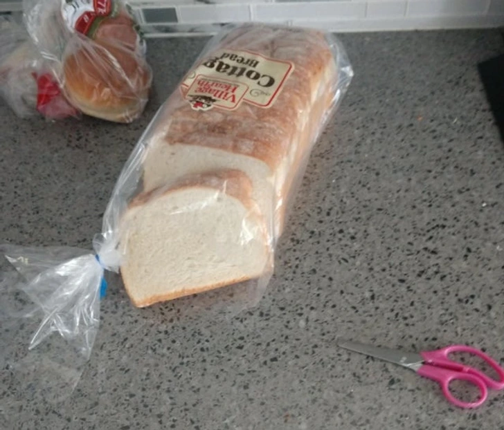 “This is how a 5-year-old opens a new loaf of bread.”